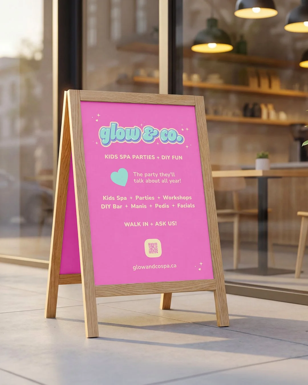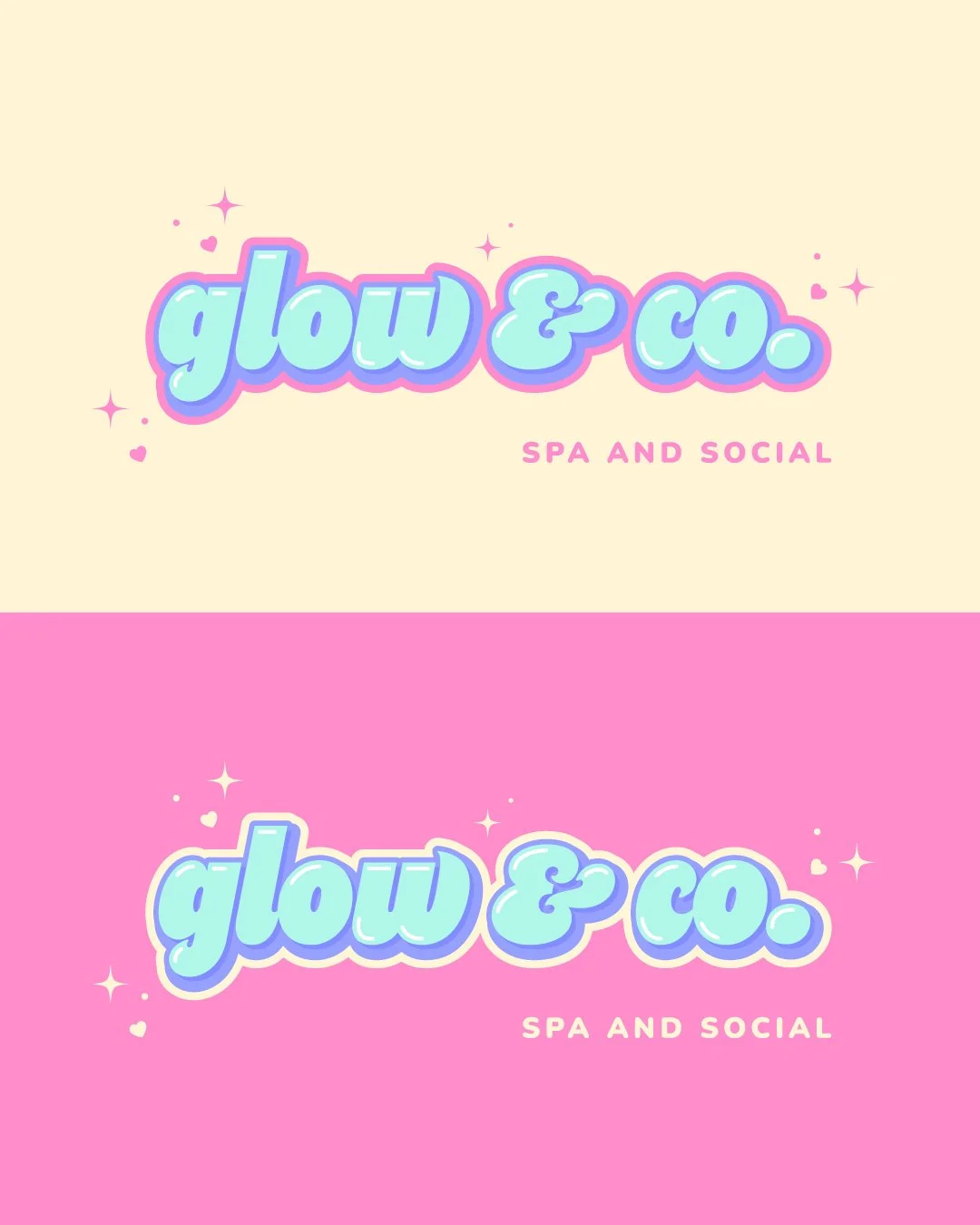 The Glow & Co. logo was designed to feel fun, layered, colourful, and full of personality. A flexible system of layouts ensures it adapts seamlessly across print, digital, and social while staying consistent and engaging.